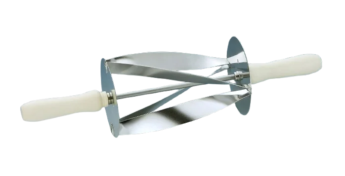 This rolling cutter with curved strips allows for triangular cuts of dough. With just one roll, the triangle turns into a croissant.