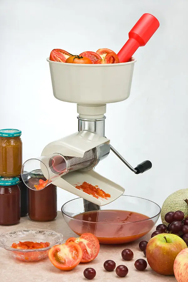 A sauce maker with large capacity hopper and mounting clamp with rubber to protect counter-tops.