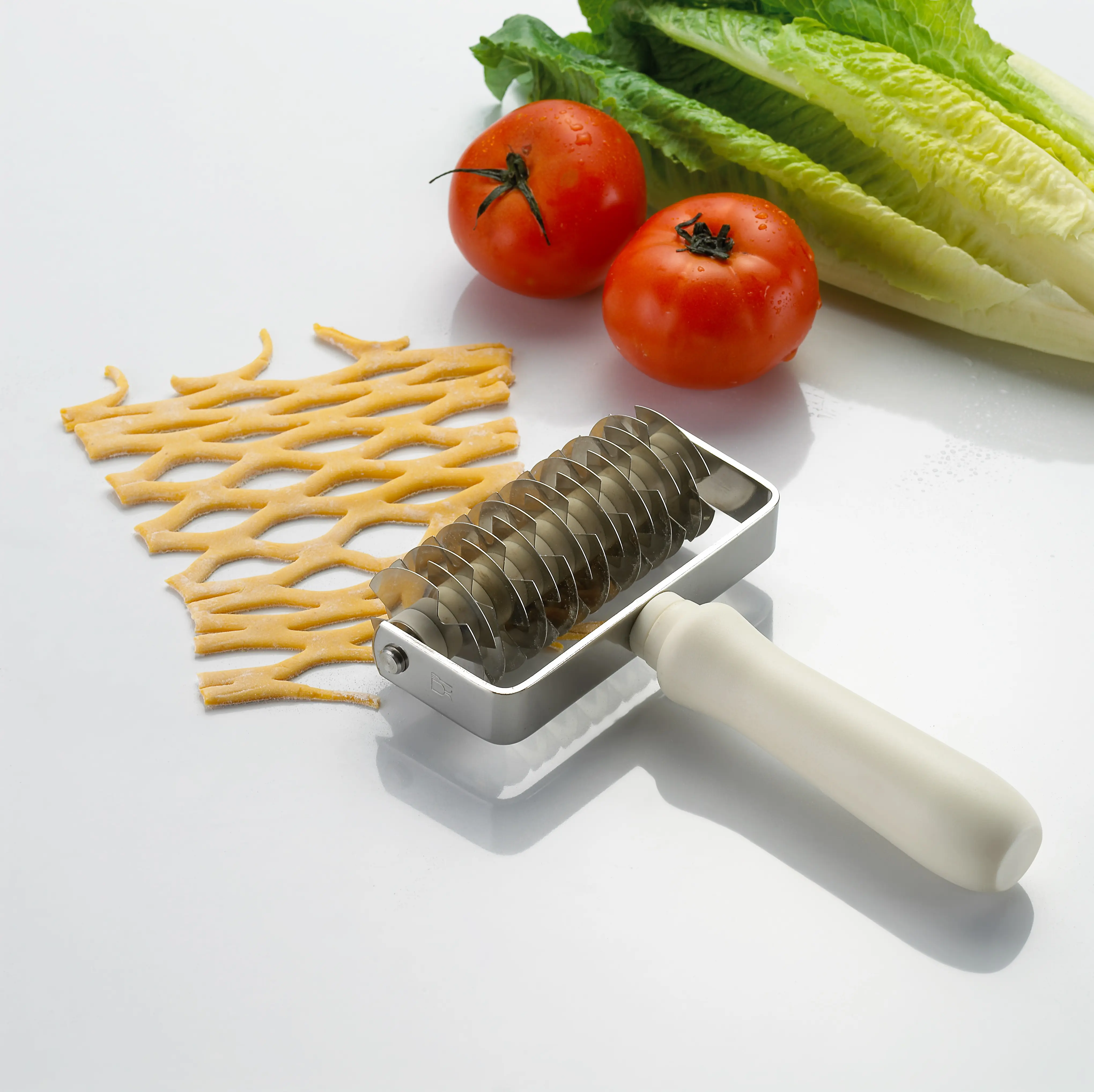 Lattice Pastry Roller creates a diamond shape lattice. For quickly piercing dough in an even pattern. No “weaving” required.
